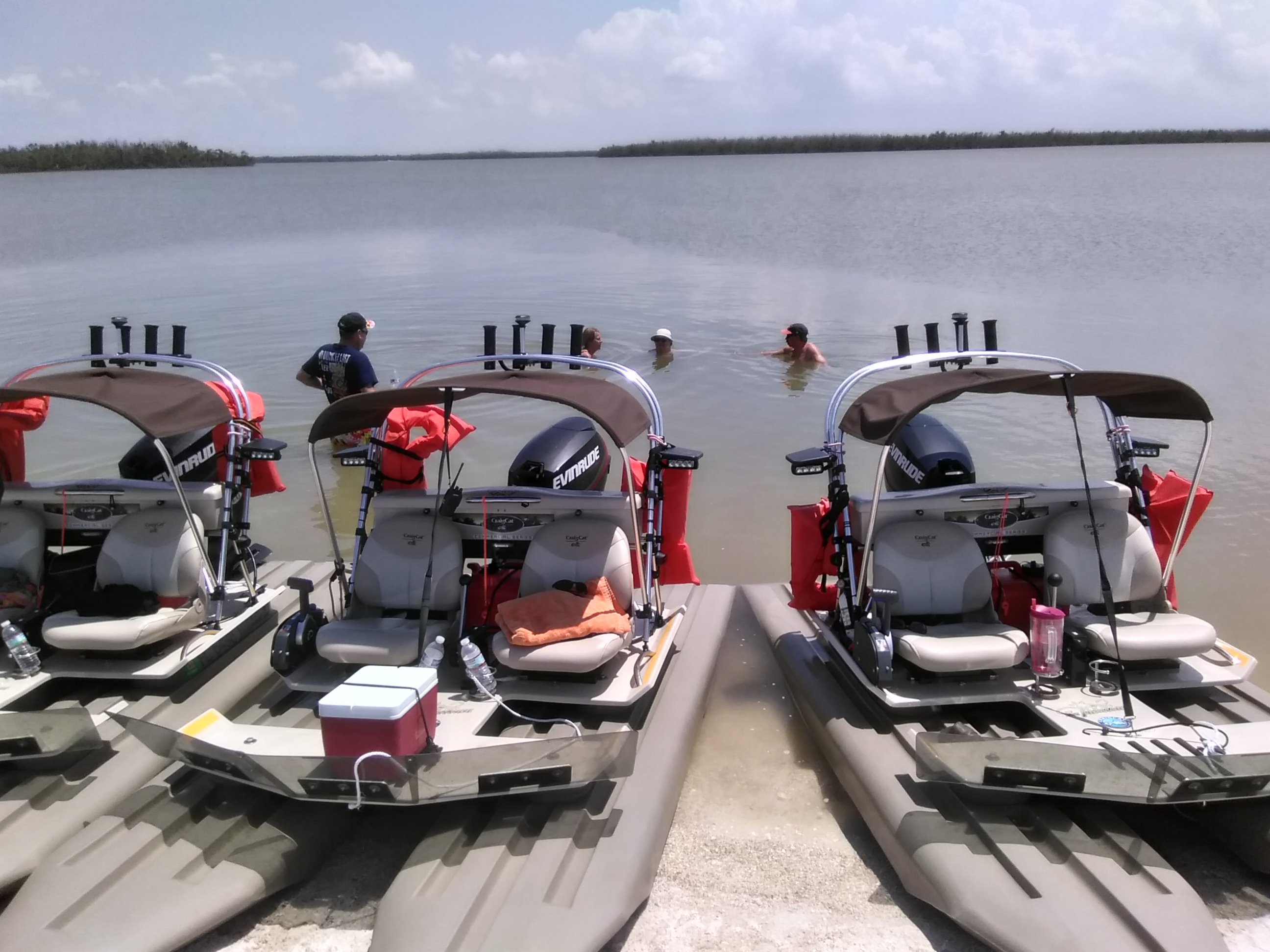 We leave from the Goodland Boating Park on Marco Island. The trip lasts 2.5 hours in total. Our tours usually leave around 11 AM and a second tour would leave around 2:30 PM. Tides may change this schedule a bit. We make our way through the 10,000 islands (Marco Island is the largest of the 10,000 islands) and we make our way to a beachy barrier island called White Horse Key. We are there for about 30 minutes or so. You can go shelling, swimming, have a picnic, just go for a walk, or even bring a fishing pole! Sometimes there are other people at the island. After about 30 or maybe 40 minutes we hop back in the boats and make our way to the dock. We feature the fun Craigcat boats that feature bucket seats, drink holders, bimini tops and small outboard engines that propel them at about 25 mph through the water. The passenger should have a camera or phone ready at all times to take pictures and video!